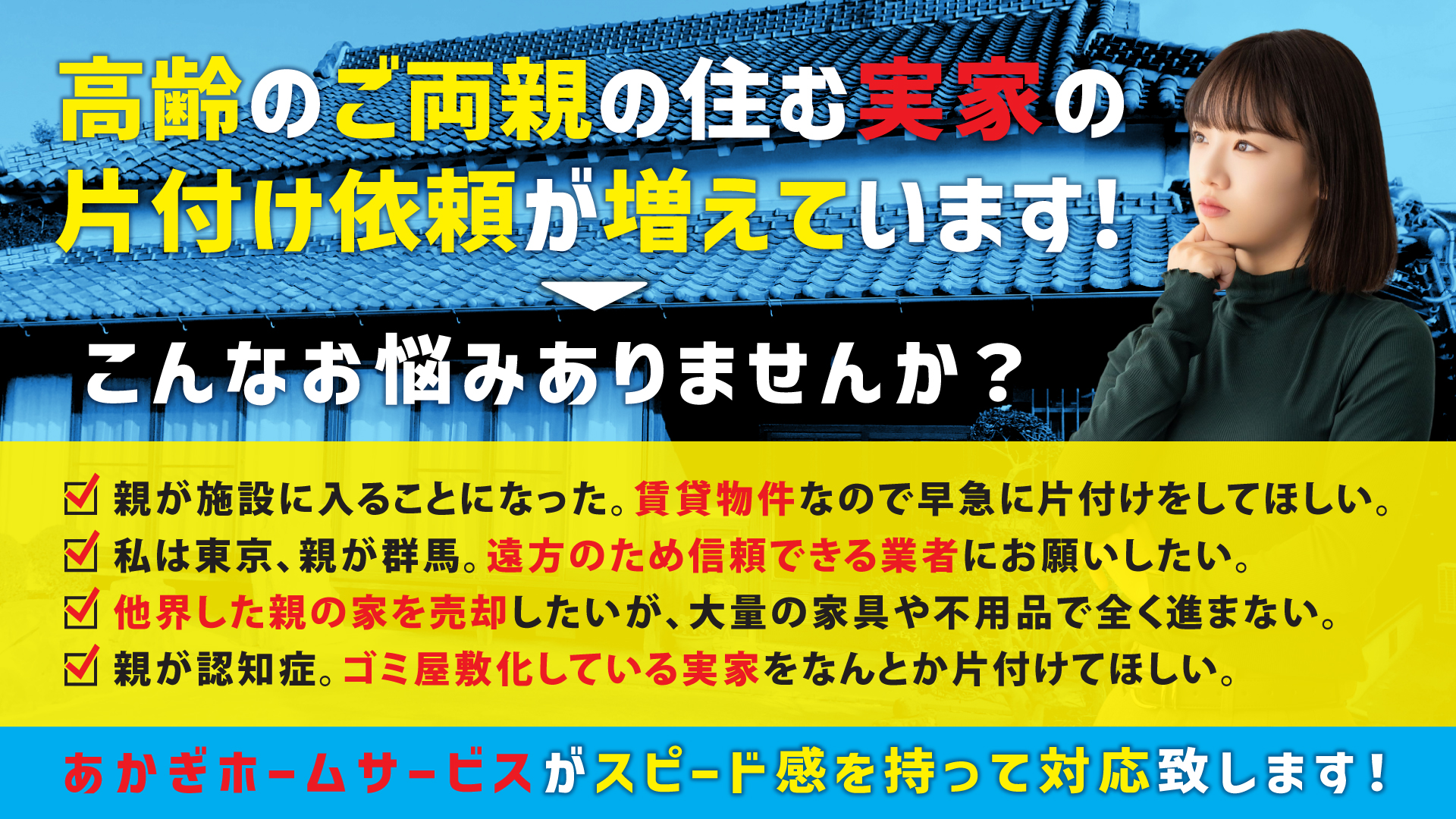 実家片付けでのお困りごと・お悩みはどうぞご遠慮なくお聞かせください。