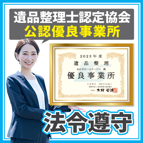 これは、ご家族の心情に配慮し、法規則に沿って適切な形で遺品を処理することができる専門知識と技術を持つ専門家であることを認定された業者が持つ資格です。
